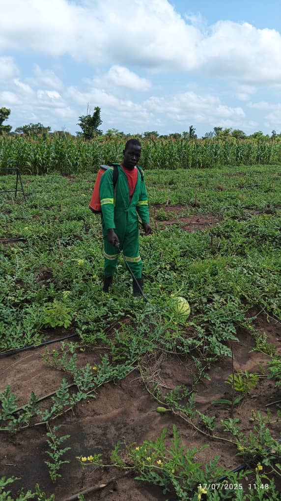Both farmers and field staff are actively engaged in managing the garden, applying new techniques learned through training. The initiative aims not only to improve immediate food production but also to foster sustainable farming practices that can be replicated across the settlement.